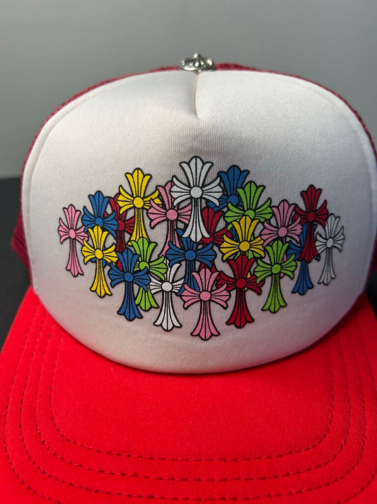 New Chrome Charts Multi Color Red Trucker Hat