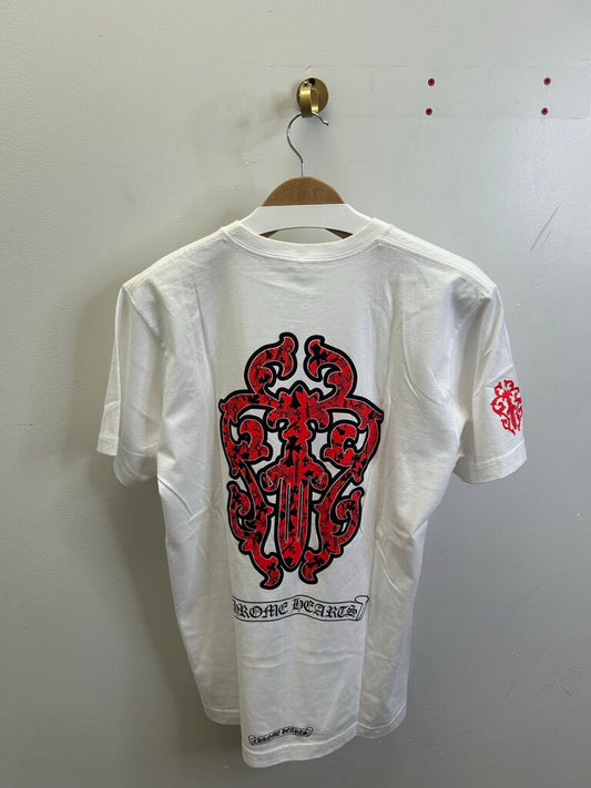 New Chrome Heart Gradient Vertical Logo White Tee size L