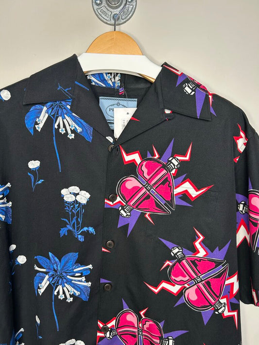 Preowned Prada Black Velour Logo Black Crewneck size XL
