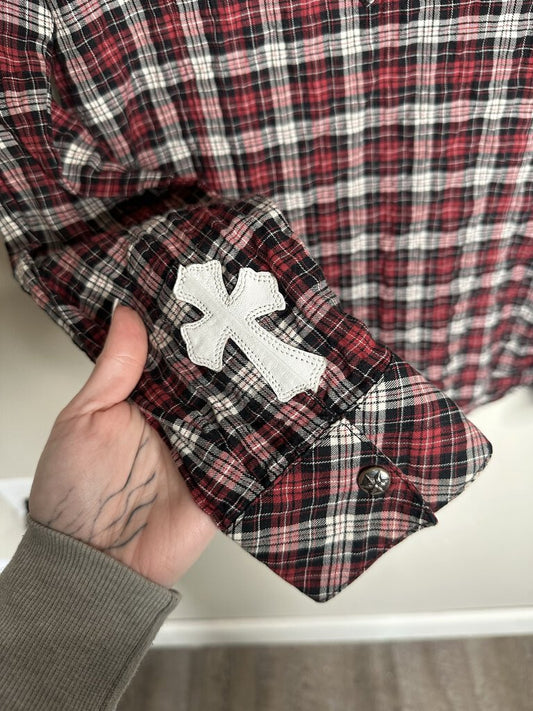 Preowned Chrome Hearts Red Fleur Patch Flannel Size Small
