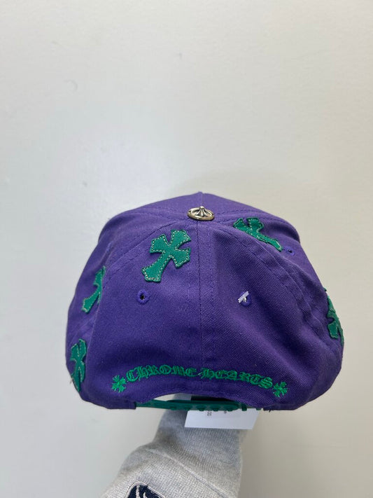 Preowned Chrome Hearts Purple Green CH Cross Patch Hat