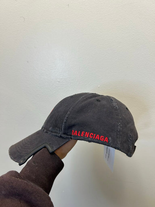 Preowned Balenciaga Distressed Black Red Dad Hat