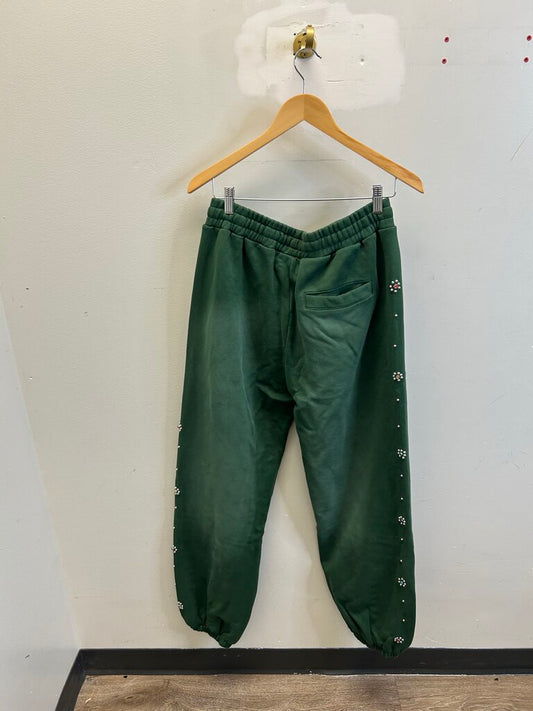 New HMDD Green Flower Studded Scrunch Sweatpants Size Medium