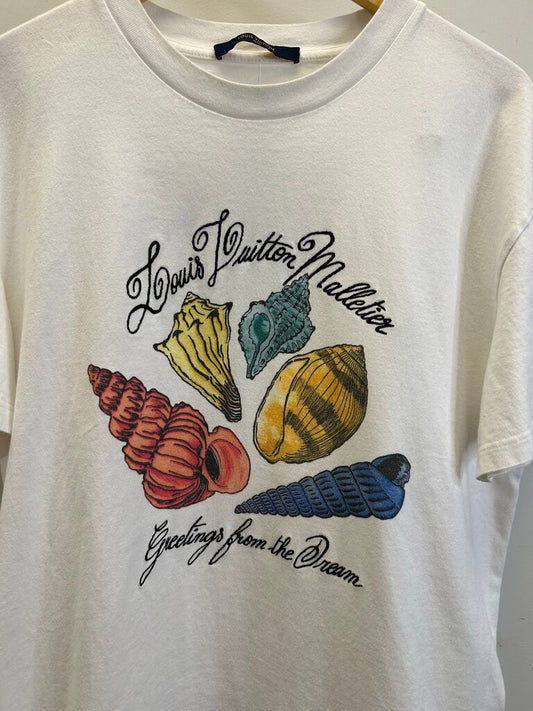Preowned Louis Vuitton White Multi Color Logo Tee Size Large