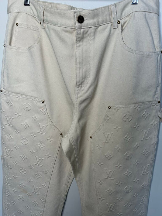 Preowned Louis Vuitton Cream Monogram Double Knee Size 38