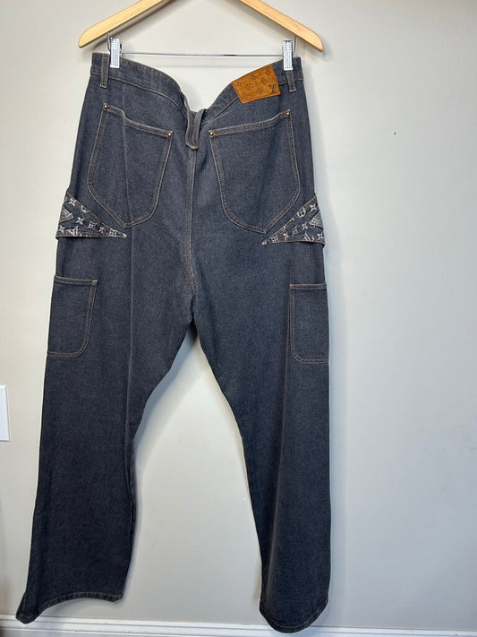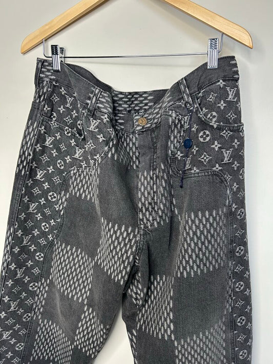 New Louis Vuitton Grey Monogram Flower Jeans Size 38
