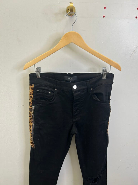 Preowned Amiri Black Leopard Patch Denim sz.30