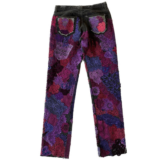 New Earthling Purple/Pink Paisley Denim Pants size 32
