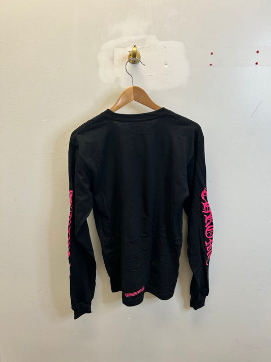 New Chrome Hearts Black Ls Pink Neck Logo Sz.Small
