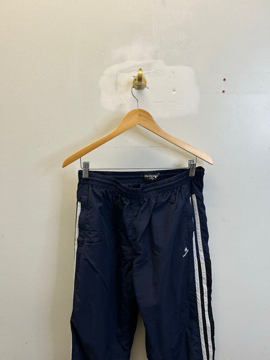 Preowned Balenciaga Nylon Navy White Track Pant sz.Large