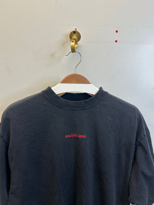 Preowned Balenciaga Black Washed Red Logo Backshot Tee Sz.XS