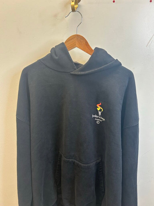 Preowned Balenciaga Paris Black Hoodie Size 1