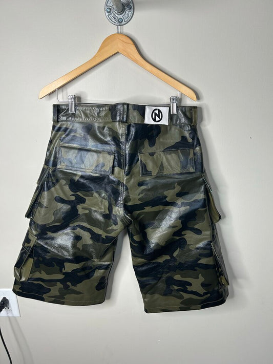 New NYRVA Camo Leather Cargo Shorts Size 30