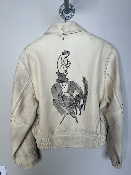 Preowned ERD Enfants Riches Deprimes Cream Leather Jacket Size Medium