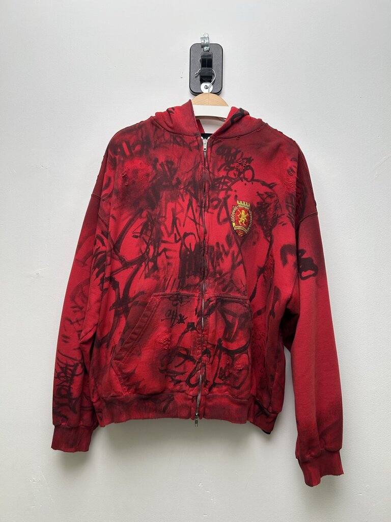 Balenciaga Red Graffiti Distressed Skater Zip sz.M