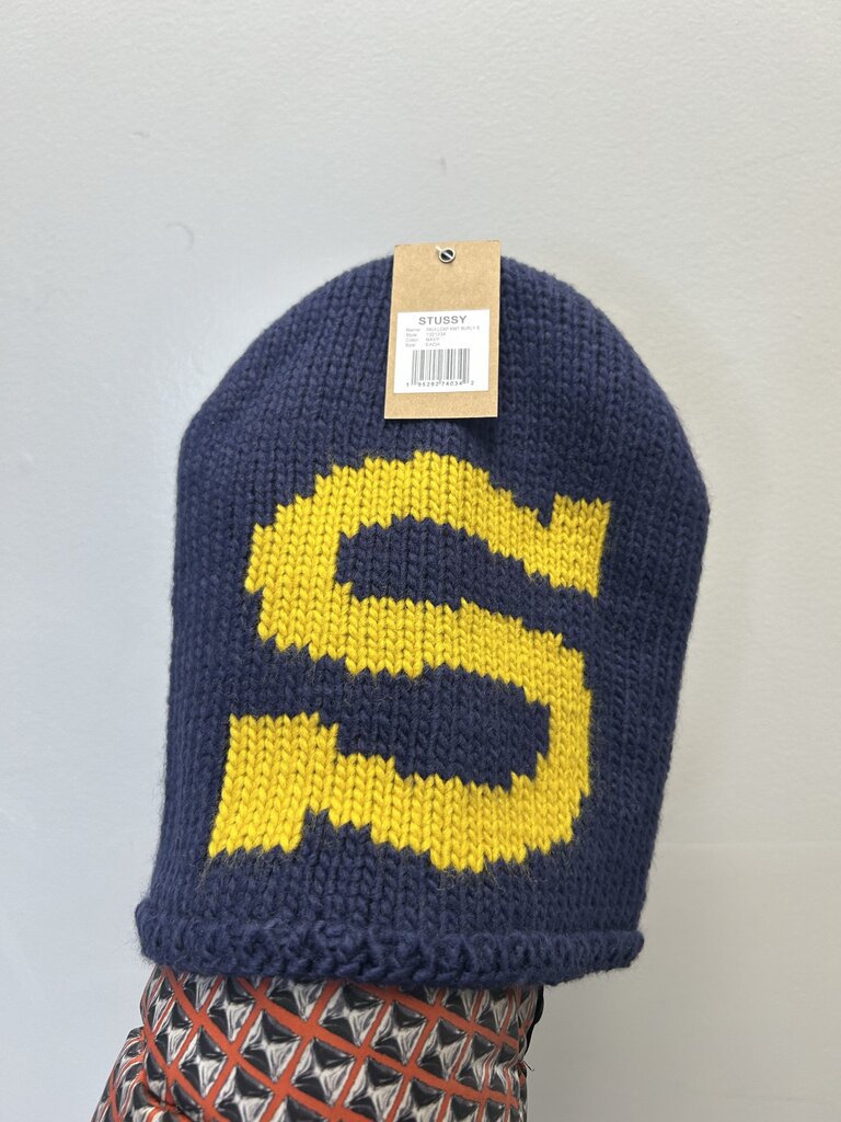 New Stussy S Logo Skull Cap Beanie Navy Yellow